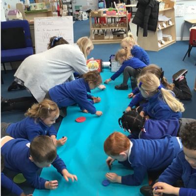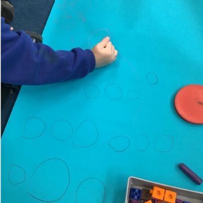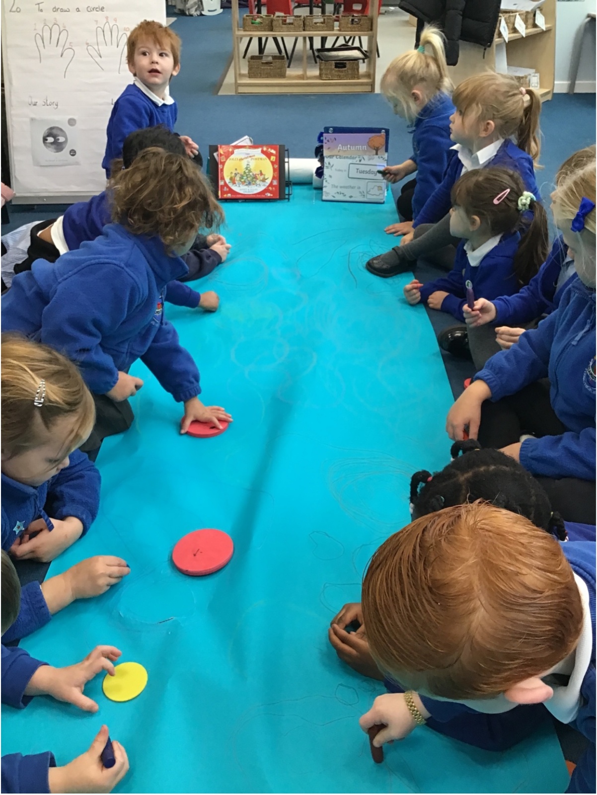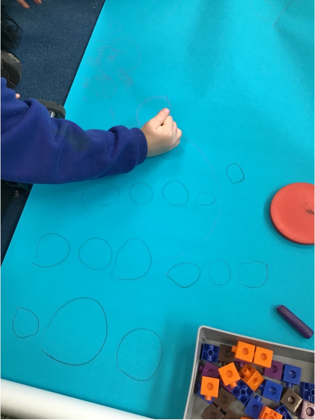 In Nursery Maths, the children have been learning about the 2D shape - circles. After lots of conversation, describing the shape, spotting it among others, and noticing circles in the environment, the children had a go at drawing them. We linked our learning to physical development by practising both gross and fine motor skills, drawing circles on large paper together.